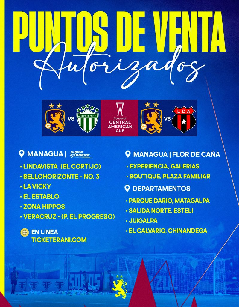 Ya se encuentran disponibles los boletos para los partidos como local del Managua FC en Copa Centroamericana 2025 de Concacaf.